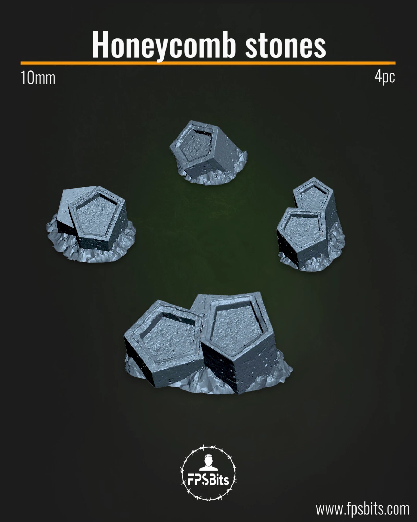 Diese sechseckigen Steine erinnern an versteinerte Waben – als hätte die Natur selbst modulare Strukturen entworfen. Perfekt für Bases in Sci-Fi-Szenarien, Tech-Tempeln oder verfallenen Hightech-Welten. Mit 4 einzigartigen Bits mit bis zu 10 mm bringst du futuristische Klarheit auf jedes Schlachtfeld.